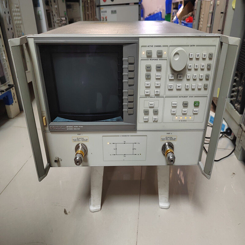 The Keysight 8720C vector network analyzer characterizes RF and microwave components down to 50 MHz and up to 20 GHz. This analyzer includes a fast-sweeping synthesized source, S-parameter test set, tuned receiver, and large color display in a single package. The Keysight 8720C is an ideal choice for cost- and space-conscious engineers in research and development, manufacturing, incoming inspection, or quality assurance.